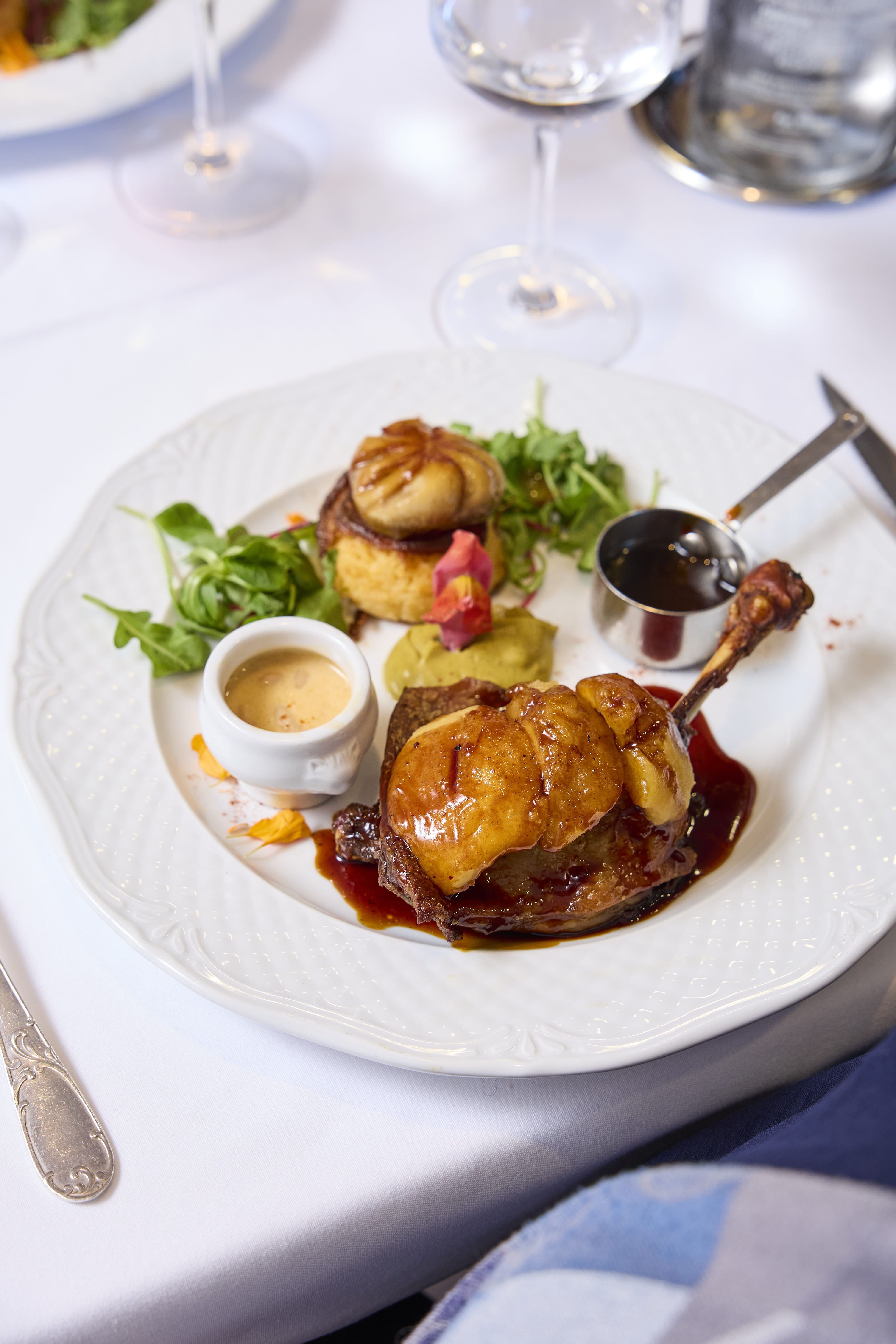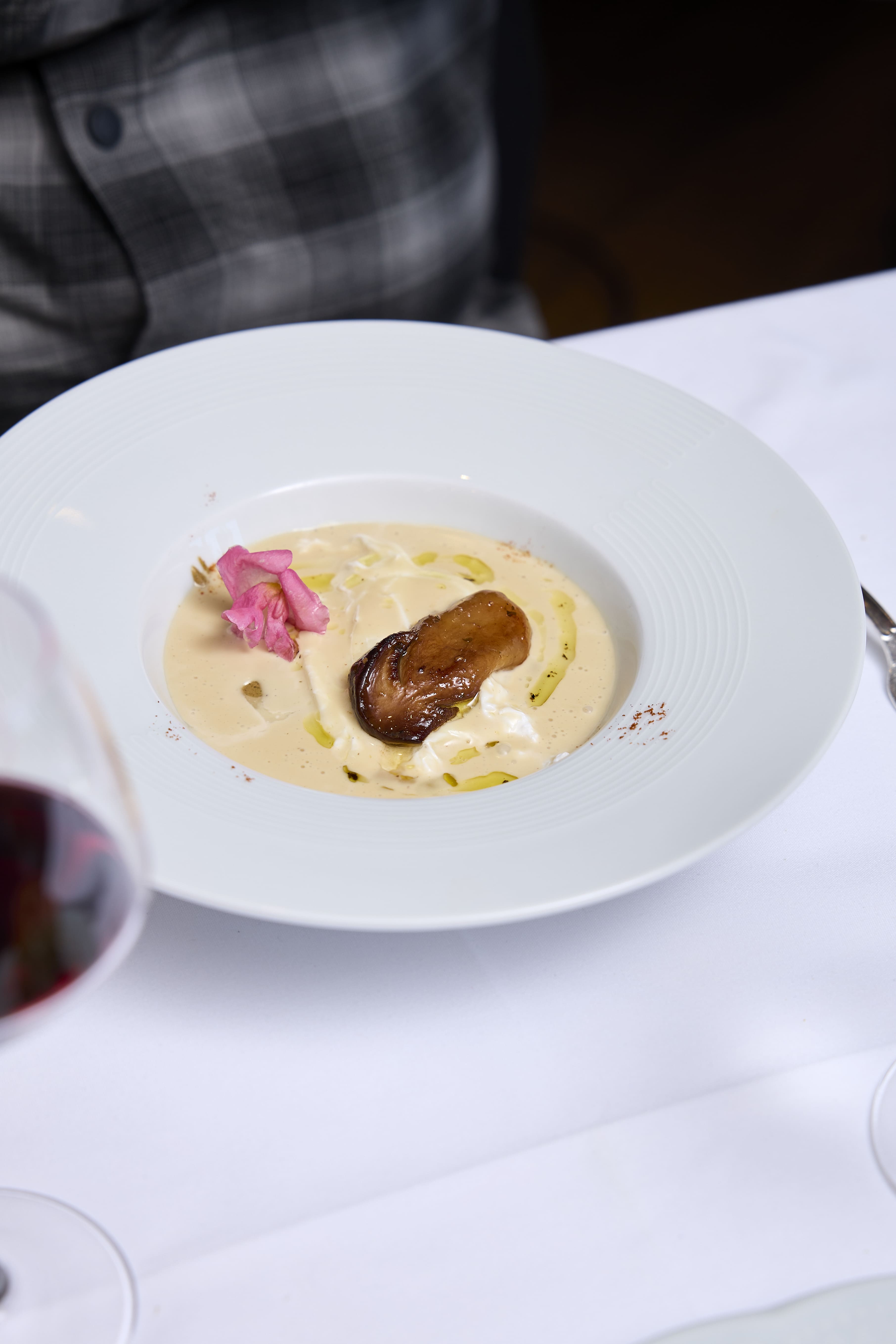 Œuf Poché mousseline de Cèpes jus de Volaille Pain d'épice et Foie Gras